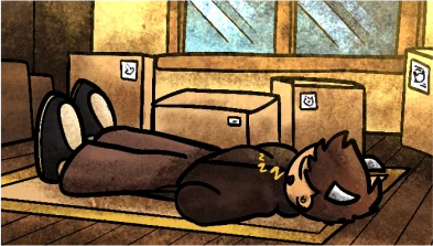 una ilustración que me gusta mucho de mi muñequito to rayao pensando sentao en la luna