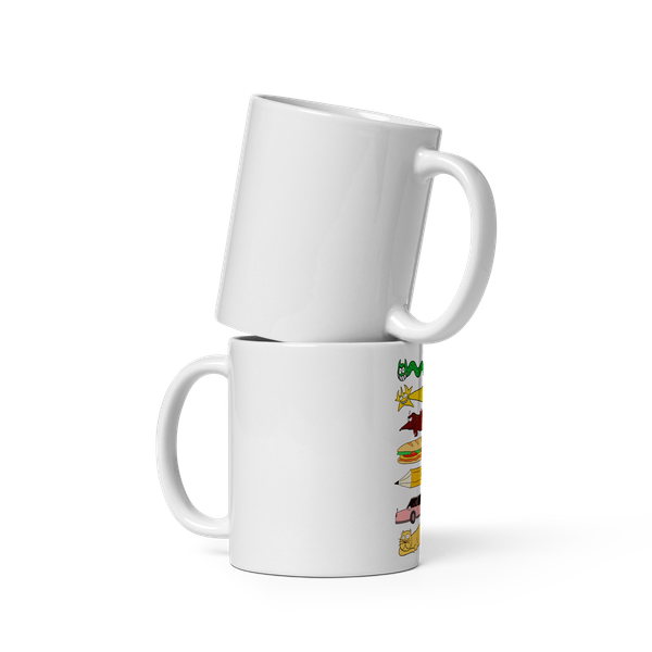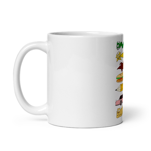 una taza con los dibujitos que hice que son to largos, hay también una lámina con esta ilustración x si te gusta mas